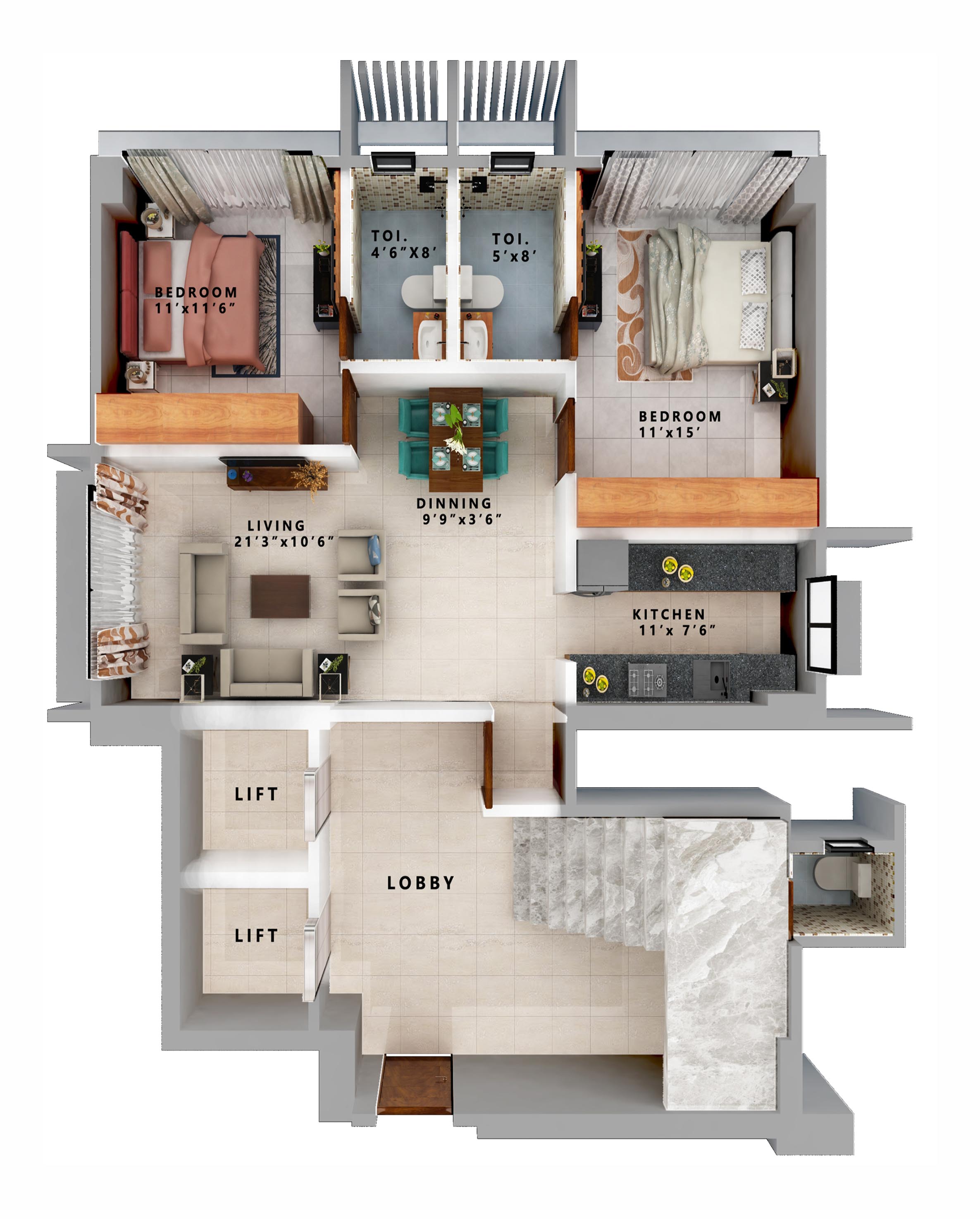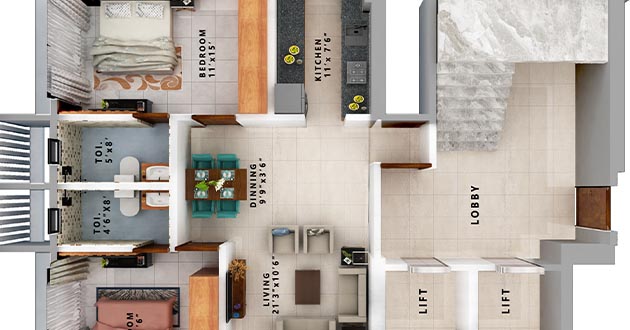 Immerse yourself in this expansive Panoramic view of your future residence. Move around virtually and feel the life-like ambience of the space you will call your home. Every detail has been meticulously crafted in the view by our team to maximise your visualisation.