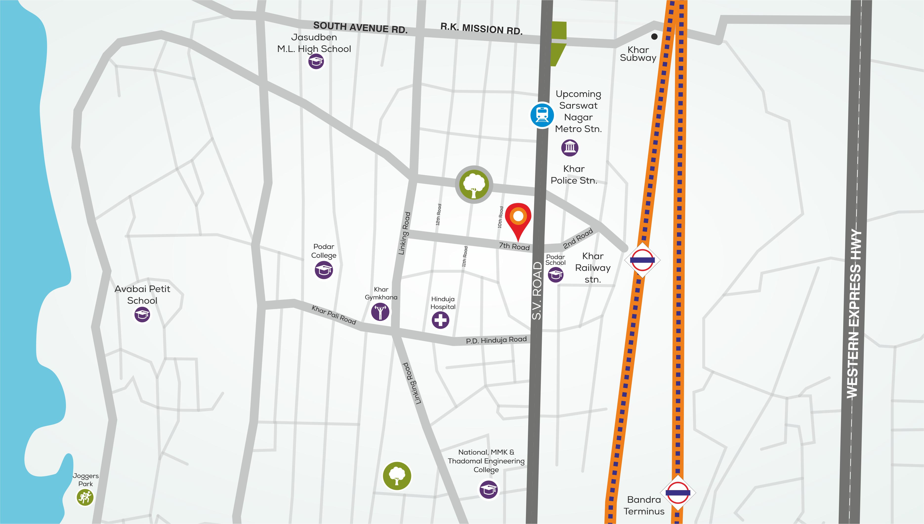 360 panorama viewA bustling western suburb in Mumbai that combines modern urban living with its historical charm. Located between Mumbai's food hotspots and the sea, Khar's broad global community reflects art and culture. Housing Mumbai's most luxurious homes, Khar's interconnectedness is notable which makes navigation of the city easy for citizens. An oasis among the urban chaos, Khar's gardens, fitness hub - Khar gymkhana and jogger's park, offers a breath of fresh air. The neighbourhood's vibrant food scene, retail and cultural events make it a desirable spot to reside for a balanced urban lifestyle.